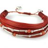 Armband geknüpft in Handarbeit aus reißfesten gewachsten Einzelsträngen. Mit verstellbarem Zugverschluss passend für jedes Handgelenk.